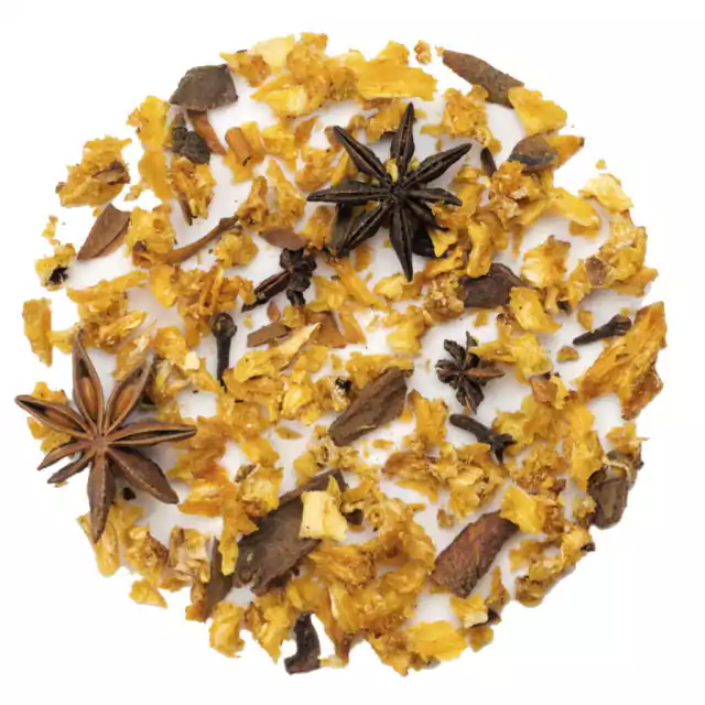Chá misto de abacaxi, anis estrelado, canela e cravo da índia. SEM CAFEÍNA. Infusão 100% natural, isenta de aromatizantes e conservantes.
